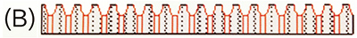 B圖:經(jīng)防滑處理的地材表面放大數(shù)倍后,毛細(xì)通道寬,毛細(xì)孔上層形成坑凹,使摩擦系數(shù)大大增加,遇水產(chǎn)生真空吸盤作用。